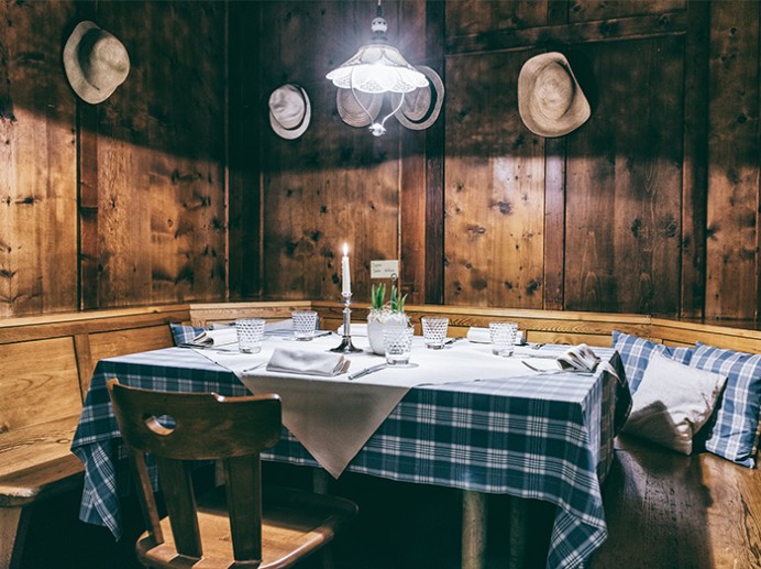 A sequence of stube, each with a dominant colour: yellow, blue, red, green. Tables laid and set in a celebration of tradition and a touch of fantasy to blend with the creativity of Nicola’s cuisine. To dine at Les Stües is to experience an evening of marvel fit for the most scrupulous of guests.