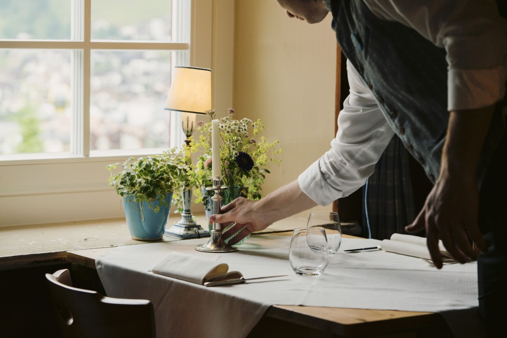 La locanda Ladinia è rimasta il rifugio di Cesco. Come se il filo della memoria che unisce il passato al presente non si fosse mai spezzato. Una casa nel mezzo del vecchio paese. Una delle più antiche. Vista sul Sassongher. È il 1930 quando Cesco Kostner decide di trasformarla in una piccola pensione. Licenza numero uno. Un pezzo di storia che ancora vive. Nei legni che scricchiolano, nei pochi oggetti che parlano, nella luce che filtra con delicatezza dalle finestre incorniciate, nell’intimità che si respira. Qui tutto sembra sospeso, come se il tempo avesse trovato un buon riparo. Più che una casa, è un rifugio per il corpo e per l’anima. Queste sono le ragioni che hanno spinto la famiglia Costa a donare nuova energia a un ambiente autentico, di una semplicità che rasenta la poesia.